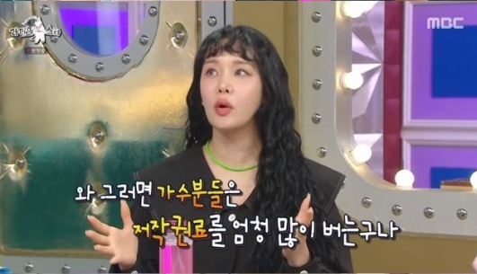 크리에이터 랄랄이 어마어마한 저작권료를 자랑했다. 2024년 4월 17일 방송된 MBC 예능 '라디오스타'(이하 '라스') 862회에는 태진아, 홍석천, 랄랄, 강재준이 게스트로 출연했다. 이날 랄랄은 숨겨진 음원 부자라며 "인터넷 방송할 때 저작권이 다 걸리잖나. 그래서 원할 때 다 틀려고 만들었다. '가자가자구', '랄토바이' 등 신나는 게 많은데 헬스장, 클럽에서 엄청 많이 튼다더라. 저는 가수가 아니잖나. 음악 방송 다니거나 가수 활동보다는 재밌는 노래를 만들어 많이 듣게 할 생각이었는데 저작권료가 들어왔는데 잘못 들어온 줄 알고 회사에 다시 전화했다"고 말했다.